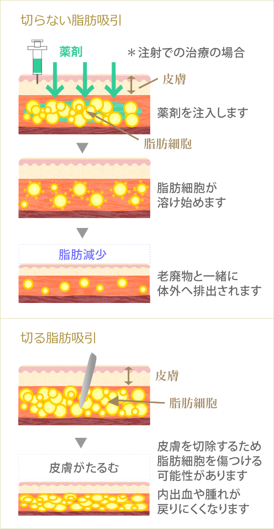 『切る脂肪吸引』と『切らない脂肪吸引』の違い