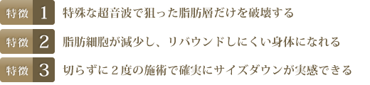 ◎ 1cm程度の脂肪層を破壊し徐々にサイズダウンしていくため、滑らかで自然な仕上がり。 |