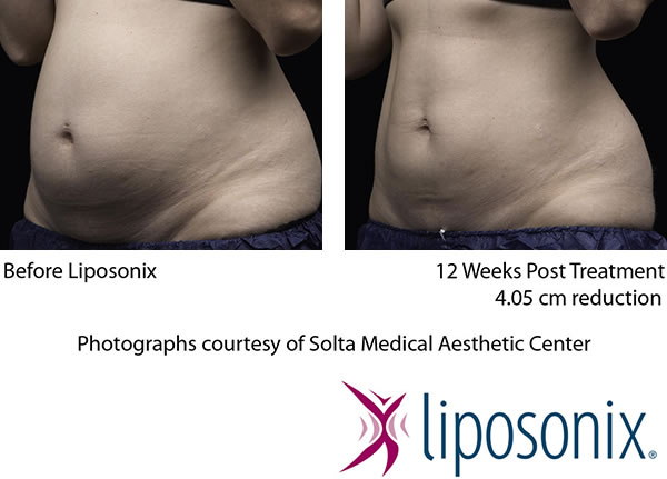 皮下脂肪が体内でミルフィーユのような状態で1枚1枚重なっていると仮定したとき、狙いたい箇所が上から10枚目だとすると、ライポソニックスはその1枚だけを焼き溶かして抜くことができます。ただし、表皮のすぐ下にある小さな粒の脂肪層だけは皮膚を形作る重要な役割があるため、これを取り去ってしまうと皮膚がえぐれてしまう危険があります。なるべく奥にある大きな粒の脂肪層を取ることで、えぐれる、凹むということがなくサイズダウンが行えるのです。『切る脂肪吸引』も、この奥の大きな粒の脂肪層にカニューレを差し込んで吸引することが目的ですが、もし表皮に近い脂肪まで間違って取り去ってしまうと皮膚がえぐれて元に戻すことができなくなるのです。ライポソニックスの『切らない脂肪吸引』は、常に一定の深さで照射されるため取ってはいけない層を破壊せず、狙った脂肪のみを取ることができるので安心です。しかも、同じ深さで狙った層だけ溶かすこの方法は、どんな部位でも行えるためキレイに脂肪を減らせて失敗もありません。振袖のようになってしまった二の腕や、ぽっこりと突き出たお腹でも、1回1時間程度の治療ではっきりと効果を実感していただくことができます。個人差はありますが、2度の施術でウエストラインが約1cm程度縮小し、ドレスやパンツのサイズをワンサイズ小さくすることも可能だといわれています。