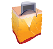 それぞれの皮下脂肪の深さに合わせて、皮膚の上から超音波を正確に照射します。このとき深さ1.3cmが中心部となり、同じ深さを保ちます。 -