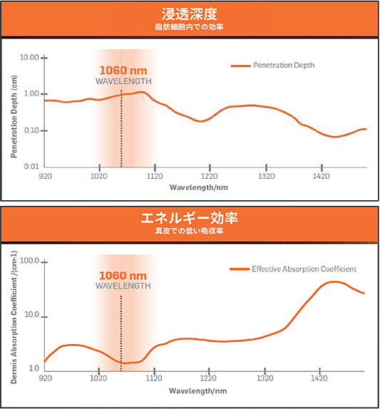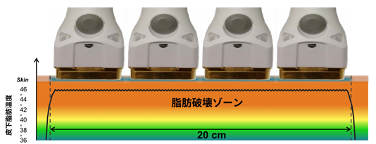 皮膚では熱を発生させずに脂肪層のみに熱を発生させる特徴があります。
