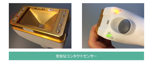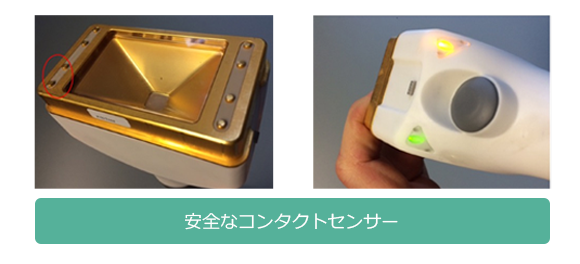 それを可能にしているのが脂肪組織の温度を自在に調整できるアプリケーターにあります。アプリケーターの先端からはレーザーが照射されるのと同時に、コンタクトクーリング機能により表面からの冷却を行いつつ、温度をモニタリングすることでターゲットとなる脂肪層の温度を42〜47℃に保つことで脂肪細胞を融解させます。温度モニタリング機能があることで火傷のリスクを回避することはもちろんのこと、快適に治療を受けることが可能になるのです。